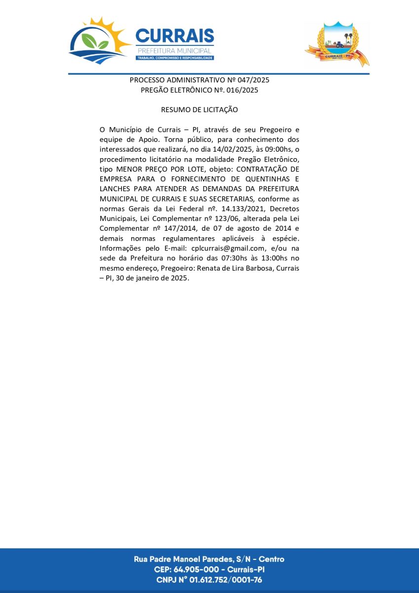 AVISO DE PREGÃO ELETRÔNICO N° 016/2025