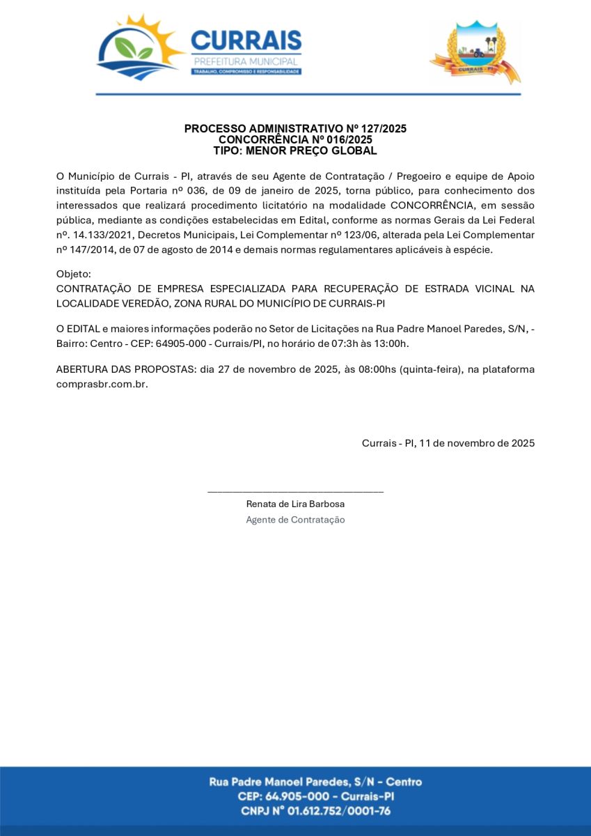 AVISO DE CONCORRÊNCIA Nº 016/2025