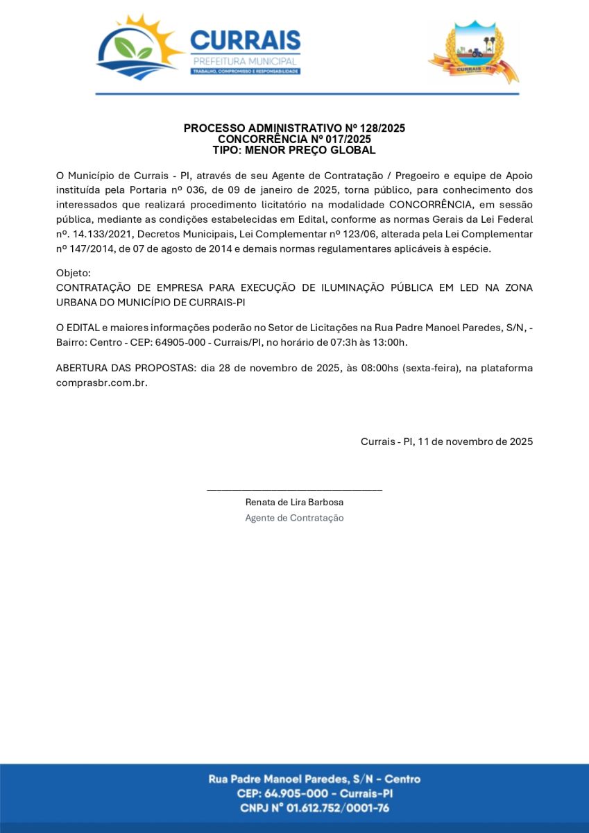 AVISO DE CONCORRÊNCIA Nº 017/2025