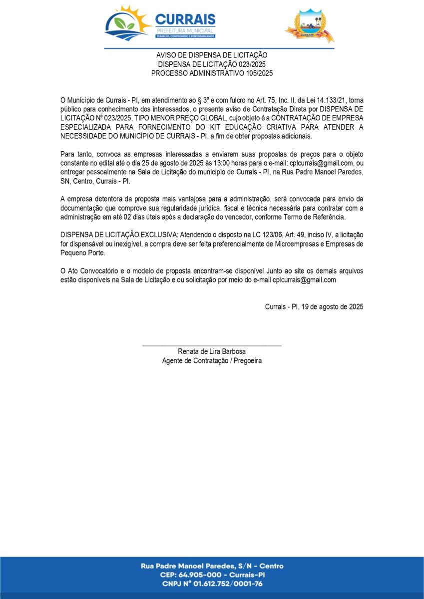 RUA PADRE MANOEL PAREDES, S/N, RUA PADRE MANOEL PAREDES, S/N - Bairro: CENTRO - CEP: 64905-000 - CURRAIS/PI