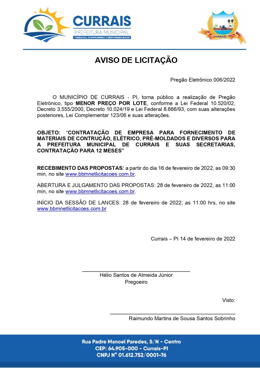 Aviso de Licitação 006/2022