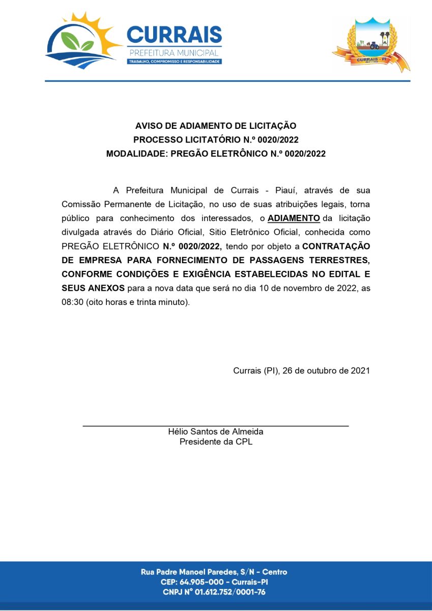 Aviso de Licitação 020/2022