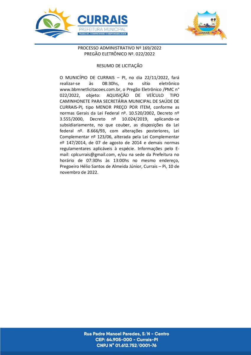 Aviso de Licitação 022/2022