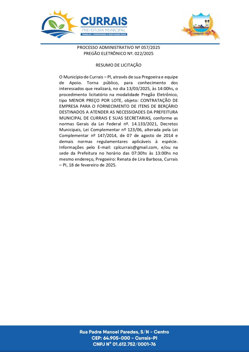 AVISO DE PREGÃO ELETRÔNICO Nº 022/2025