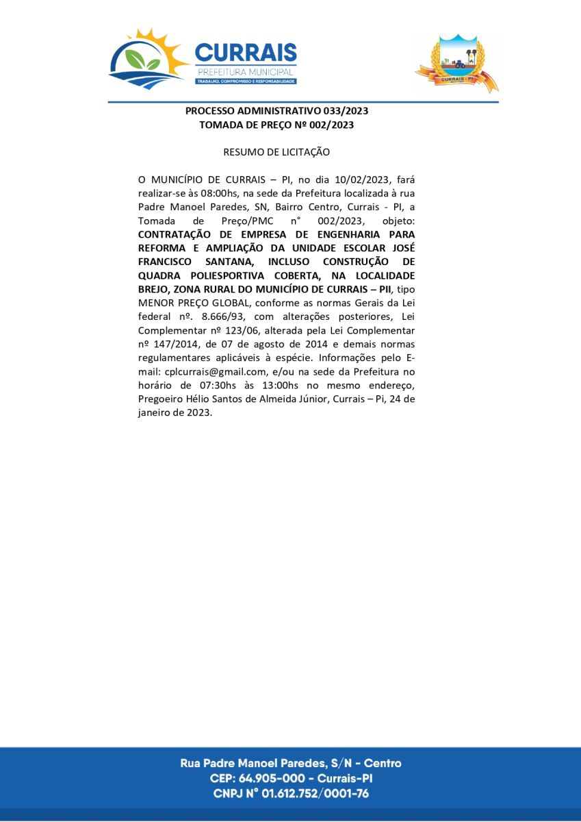 Aviso de Tomada de Preço 002/2023